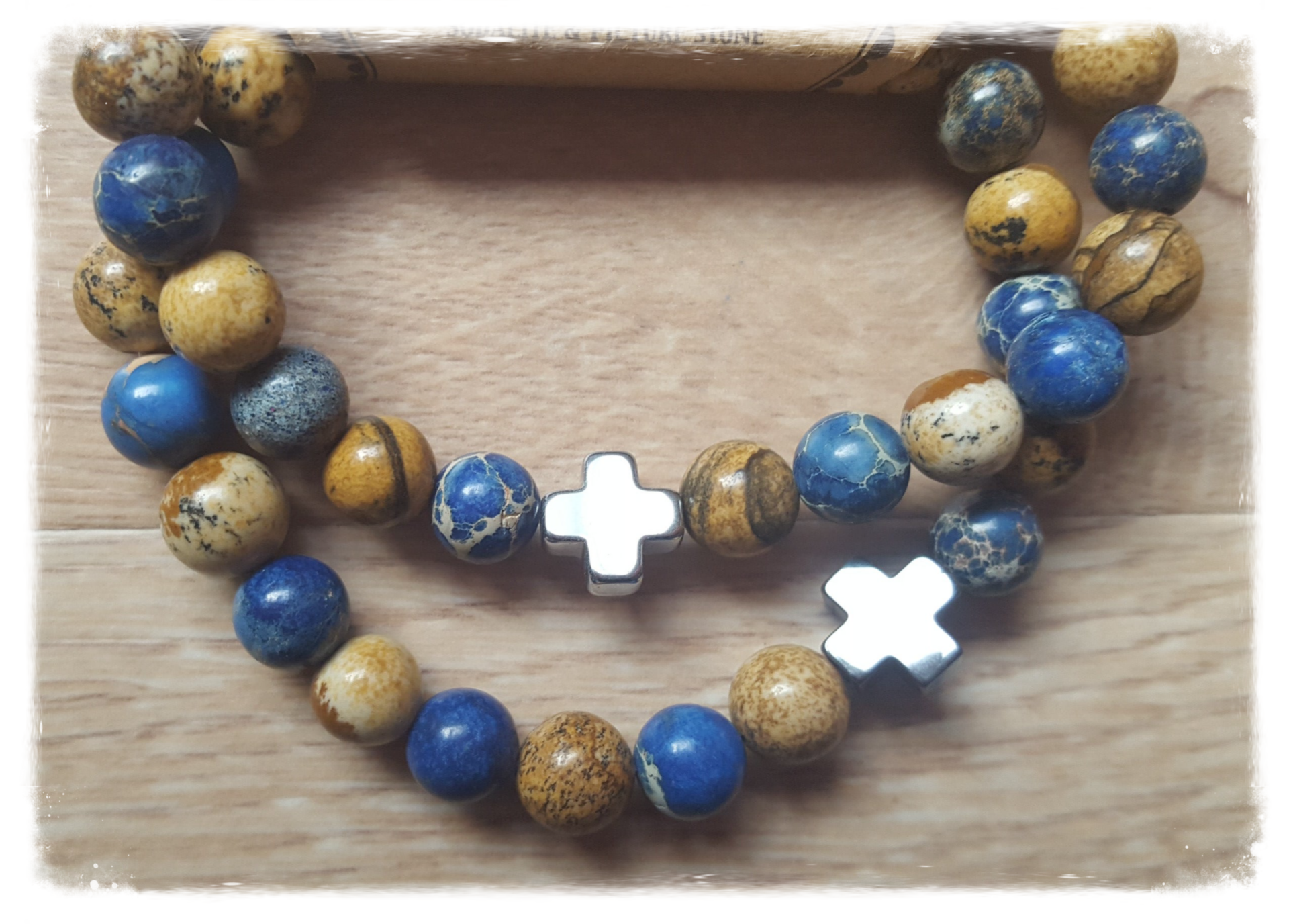 Le Soutien - Sodalite & Jaspe Paysage Superbes bracelets d'amitié en pierres semi-précieuses.