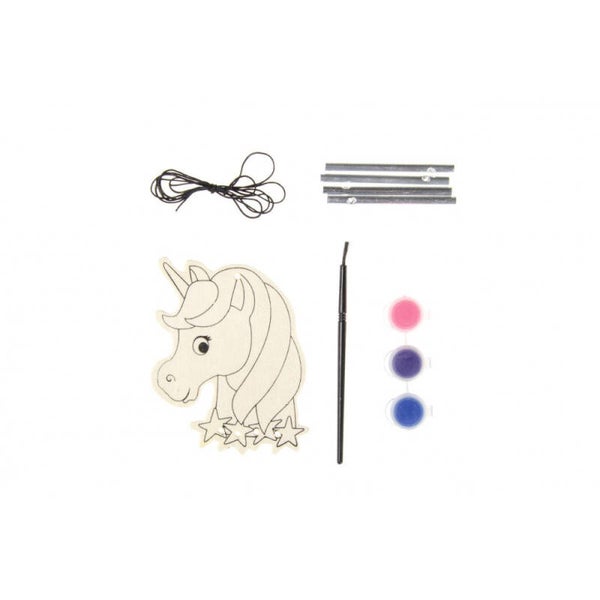 Des images en bois qui ne peuvent pas seulement être colorées, car après la peinture vous pouvez en faire un carillon à vent, les éléments pour créer votre propre décoration sont inclus.