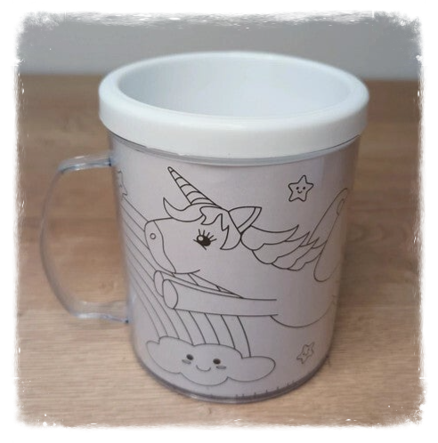 Ce mug de 30 cl est doté d'une double paroi dans laquelle se trouve le coloriage des Licornes.