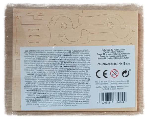 Puzzle 3D voiture en bois naturel.